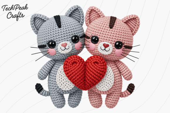 Gentle romance and soft color palette create approachable Valentine imagery in this coupled cats design. The amigurumi style adds handmade warmth that feels genuine rather than commercially manufactured.