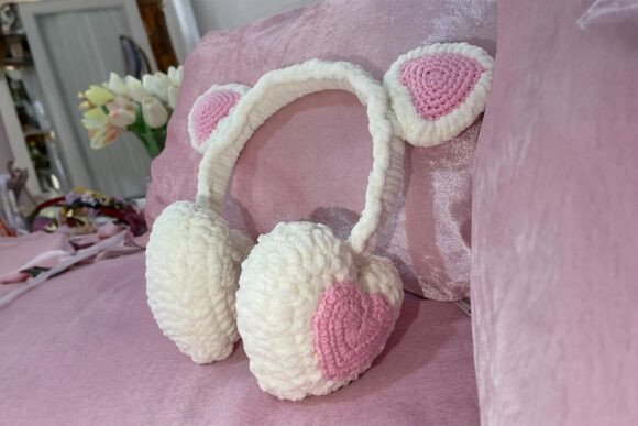 Instant PDF download provides immediate project access with clear instructions for creating these uniquely charming earmuffs. Color customization options let you personalize beyond the featured pink heart design.