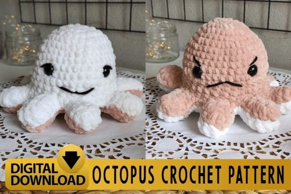 Digital PDF bundling includes octopus and reversible sunflower patterns, delivering variety within one purchase. Consistent kawaii aesthetic ensures adorable results regardless of chosen project or displayed side.