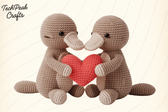 Crochet Platypus Couple Heart PNG