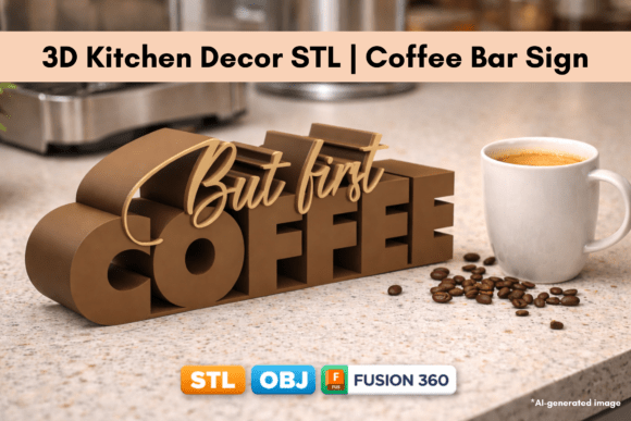 Every coffee lover’s kitchen needs this. Bold block letters combined with elegant script make this “But First Coffee” sign the perfect addition to any kitchen, coffee bar, or cozy corner. Modern, warm, and immediately recognizable, it’s the kind of decor piece that feels both personal and stylish. Files come in multiple formats including separated pieces for multi-color printing and a fully editable Fusion 360 source file — completely customizable in size and color to match your space perfectly.