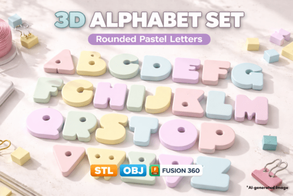 Technical Details: Formats: STL (all 26 letters), OBJ, F3D (Fusion 360) | Smooth rounded design | Fully scalable | Multi-color compatible | Layer height: 0.2 mm | Infill: 15–20%