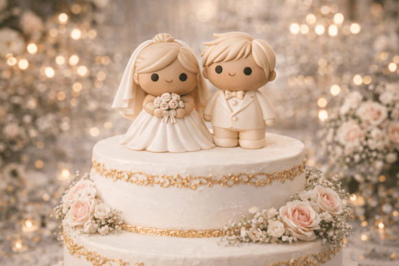 💍 DOWNLOAD FREE and make your wedding day even sweeter with this kawaii couple topper!