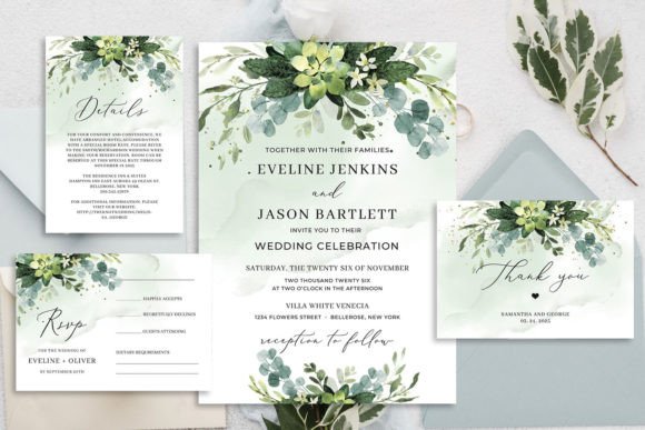 Botanical beauties, this one is for you! The Succulent Wedding Invitation Template is lush, fresh, and undeniably charming — a perfect match for garden weddings, rustic celebrations, or any couple who loves the outdoors. This fully editable Greenery Wedding suite includes the Invitation (5″×7″), Details Card, RSVP Card, and Thank You Card — all delivered as high-resolution PSD files that are crisp, sharp, and print-ready. Fonts used include White Garden, Abhaya Libre, and Montserrat Medium, lending the design a beautifully balanced mix of elegance and casual warmth. Unlimited edits and downloads are included, so you can perfect every detail before printing at home or at your local print shop.