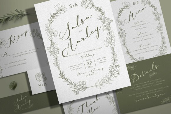 The Flowers Sage Wedding Invitation Set is a dreamy, nature-inspired collection that covers every stationery need for your big day. The sage green floral palette evokes calm, romance, and natural beauty — perfect for boho, rustic, or garden-style weddings. The complete set includes 7 PSD files: Invitation (5″×7″), Detail Card (5″×3.5″), RSVP Card (5″×3.5″), Thank You Card (5″×3.5″), Favor Tag (2″×2″), Belly Band (11″×1.75″), and Menu (4″×6″). All files are CMYK/300 DPI with customizable text and colors, print-ready with bleed areas already in place. Font links are provided in the download folder, and a help file is included for easy setup.