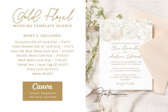 4. Gold Floral Wedding Invitation Bundle