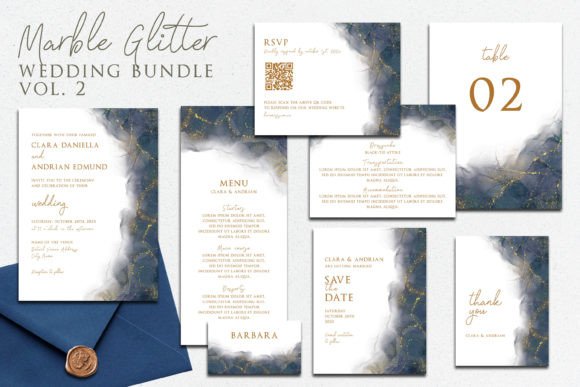 7. Marble Glitter Wedding Invitation Bundle