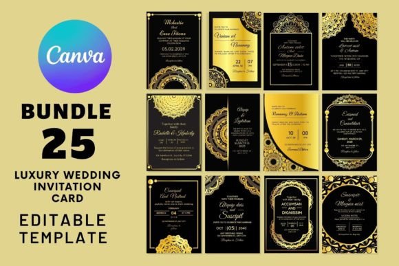 Elevate your wedding stationery with this curated collection of 25 Luxury Wedding Invitation Card designs, each featuring handwritten fonts, gold foil accents, and a unique floral background. Vol-4 in this premium series brings together 25 stunning individual styles, so you’re guaranteed to find a design that speaks to your personal taste. All templates are fully editable in Canva using a free account, come in the standard 5″×7″ format, and are available as instant digital downloads. The PDF file included points you directly to the Canva editing link along with a step-by-step guide. Luxury wedding stationery has never been this accessible.